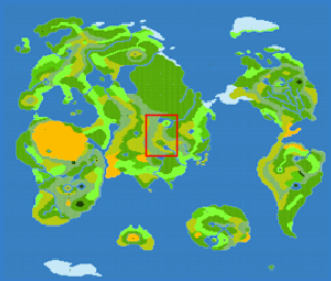 北西の大陸に大森林があり、四つの岩があるので、中央の地面を調べるとせかいじゅのはが入手できる